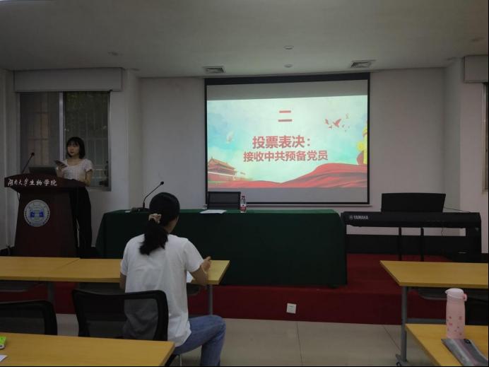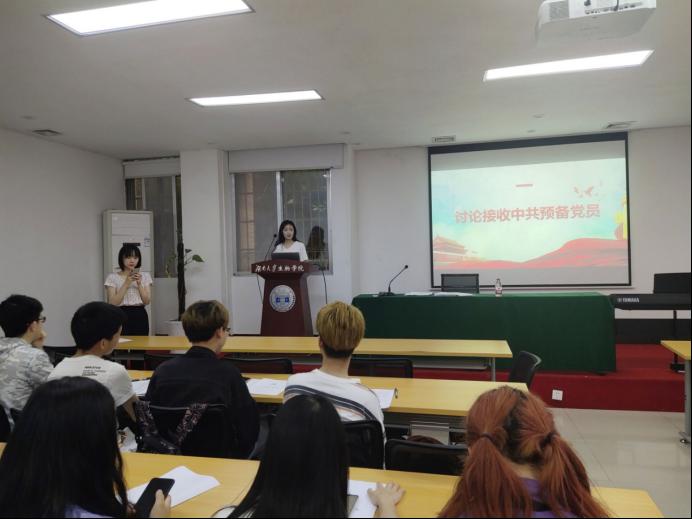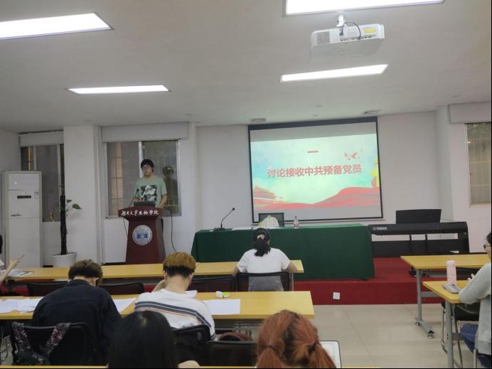 院楼108教室召开了关于接收预备党员支部大会。会议由本科生党支部副书记王子萱主持,支部书记冉晓芬老师出席会议,支部全体党员以及5月份全体发展对象参加会议。